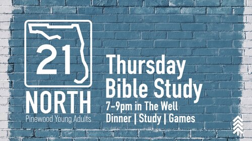 21 North meets weekly on Thursday evenings for fellowship, fun, and time in God's Word. Dinner is served every Thursday, and we spend time playing games together and engaging in bible study. This is a great time to meet new people and invite a friend to join you at Pinewood. See the schedule below for specific dates. If you have questions, or want more information, please contact Joe Gosyne.